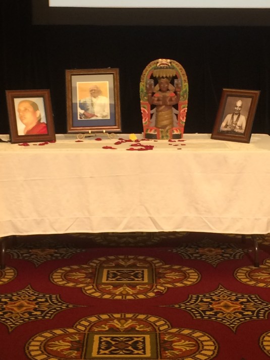 On to the actual Convention. On the first day of Asanas, I was very limited in my yoga space. There were more than a thousand people in the Convention hall doing yoga so they really packed everyone in. So, the only space allowed was the mat and a small imaginary border area around the mat. I wasn’t complaining about it but expressing the experience. On top of that, we had to move the props around in the tight area. My biggest concern was that I would fall or bump into my neighbors. The first and second Asanas attempted were very bad because I was super self-conscious. After awhile, I did get accustomed to the conditions.